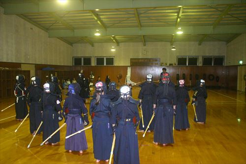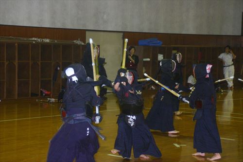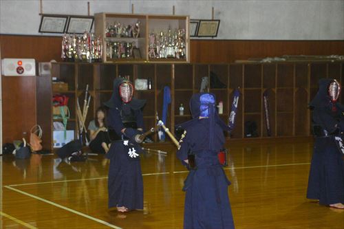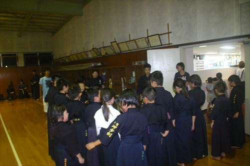 お盆休み明けの稽古。中学生の先輩達も参加してくれました。